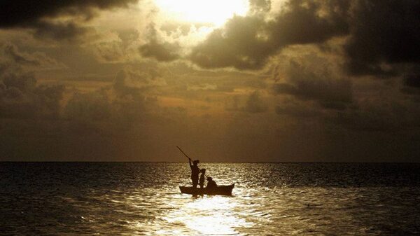 A fisherman and two children row across the harbour in front of Suva as evening approaches.TIM WIMBORNE