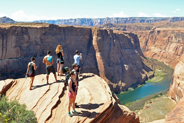 Two and a half hours east, Page, Ariz., is a good overnight stop before a double-barrelled day trip itinerary. Before the morning sun gets too strong, head just west of town to the lookout over Horseshoe Bend (US$10 per vehicle). The 800-metre access trail ends at the top of a sheer 300-metre sandstone cliff, the outside edge of a 180-degree bend in the river. It’s the best place to drink in views of the blue-green Colorado River, which drains so much of the Rocky Mountains.