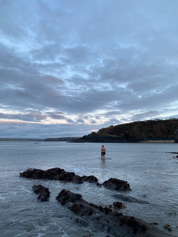 Sargeant and Emberson visited a local hamlet Cwm-yr-Eglwys and went for a chilly dip in the Atlantic Ocean.