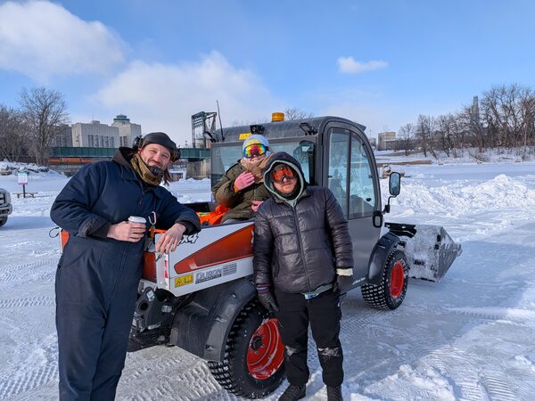 The confluence of the Red and Assiniboine Rivers was a meeting place for Indigenous people for over thousands of years; today, the number of visitors during the warmer winter weekends can exceed 15,000 per day. We head to Jordan’s small, off-roader to explore it, with Dirks and Woodyard insisting I ride in the heated cab so I can learn about this important part of Winnipeg’s winter experience. I reluctantly agree, while the couple clamber into the exposed cargo bed.