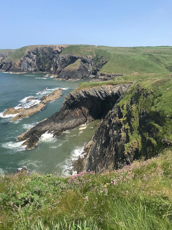 From the outset, the views are stunning. Much of the path runs atop 100-metre-high limestone cliffs, as close to the edge as possible. These parts are not suitable for anyone with a fear of heights. Even I balk at times as I glance down. The path itself in often only half a foot wide, a mere foot or so from certain death. Other times, I have to fight through bracken with my hiking pole. And quickly realize that although I am physically prepared, I hadn’t anticipated the mental challenge of the walk. My previous long hikes incorporated old drovers roads, or Roman walkways; they were designed to get people around as efficiently as possible. The point of this path is to hug the coastline – which curves in and out like so many fingers reaching into the water. A town may be two kilometres away as the crow flies, but it takes me five kilometres to reach it. They call the trail the “Welsh Everest” because its 35,000 feet of steep ascents and descents is roughly equal to the famed mountain’s height.