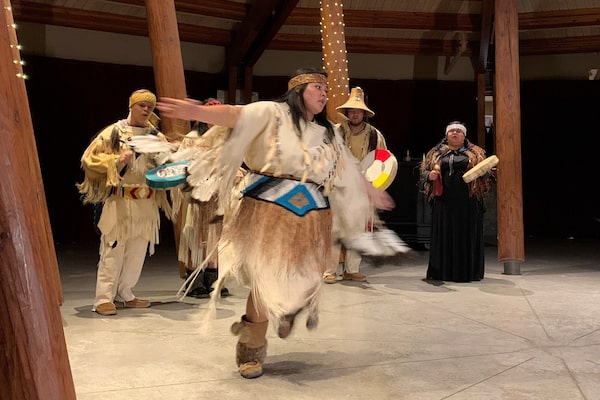 Georgina Dan of the Lil'wat Nation performs with other members of the Lil'wat and Squamish Nations at the Spo7ez Winter Feast.Catherine Dawson March/The Globe and Mail