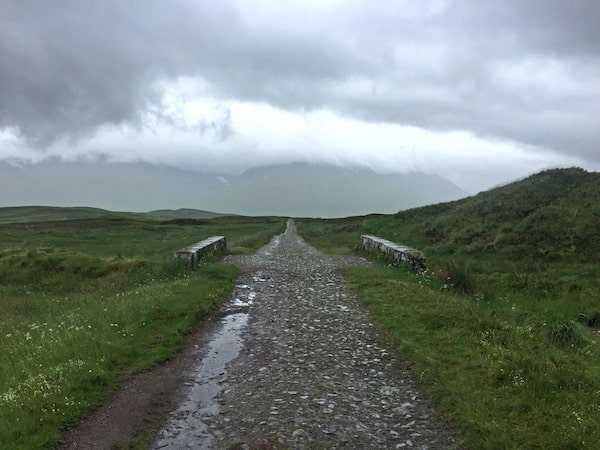 If you’re following the typical seven-day schedule, the moor is the last stretch of a roughly 30-km day – the flattest, but also the longest, of the hike. The guidebooks caution you to have emergency food and provisions on hand, along with a map, because if bad weather rolls in, there are no shortcuts out and it’s easy to get lost. “Do not at any point wander out onto the Rannoch Moor, as it is very boggy and dangerous, and you could sink into it,” one website warns. The lone wayfinder is a cairn built in memory of Peter Fleming (the brother of James Bond creator Ian), who died while hunting here in 1971. It’s all rather ominous.