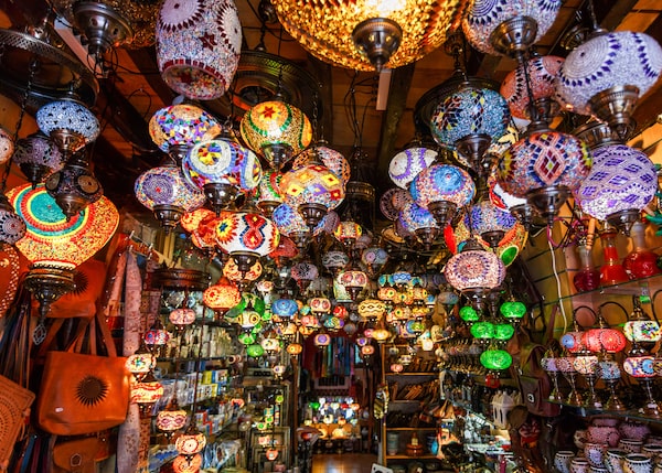 A range of lanterns and lamps hanging in the market at Marrakech.Visual Intermezzo/iStockPhoto / Getty Images