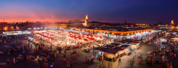 Sunset over Jemaa el-Fnaa market, in Marrakech.inigofotografia/iStockPhoto / Getty Images