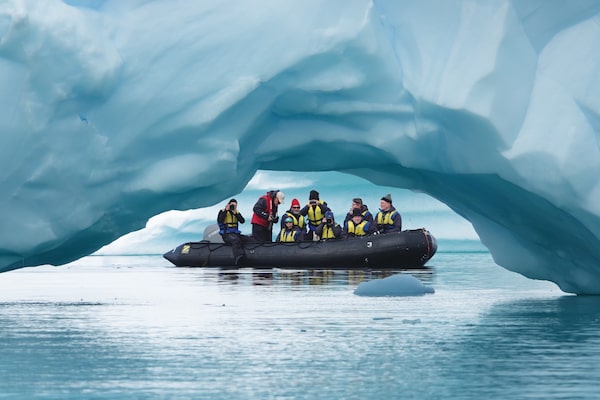 Aurora expeditions use Zodiacs to get close to icebergs and wildlife, and to ferry people ashore for hikes.Yan Zhang/Supplied