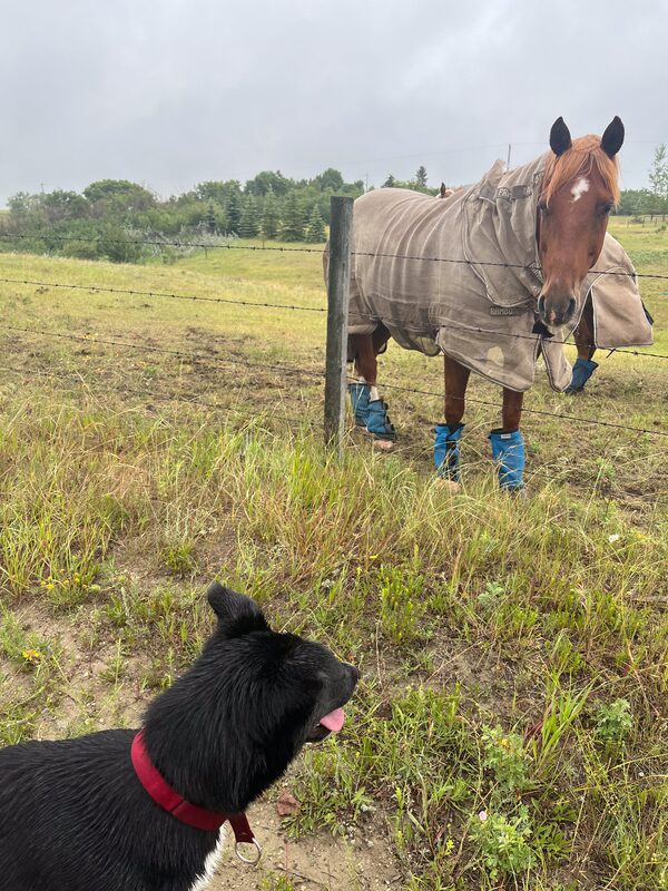 I have just crossed the border from B.C. into Alberta – Day 1 of five days driving to Toronto. I look out onto an ominous sky above a meadow. I shake my head. A tornado? Can’t be. A funnel cloud stretches toward the earth like a breathing organism. What should I do? The only thing I can do. I reach across to the passenger seat to pet Farley, my border collie husky and co-pilot, whose sweet brown eyes assure me: “It’s okay, Mom.” I take a deep breath and continue driving.