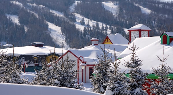 Saint-Sauveur town and ski hills.Tourisme Laurentides