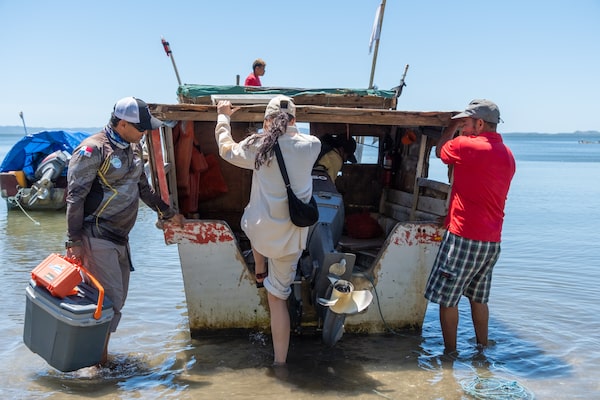 The author boards a fishing boat to the remote island of Isla Leones.