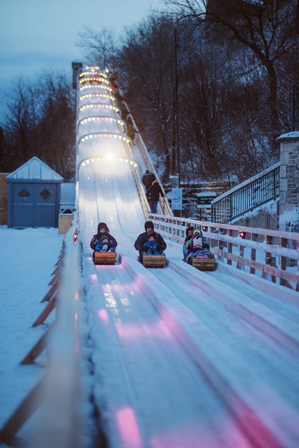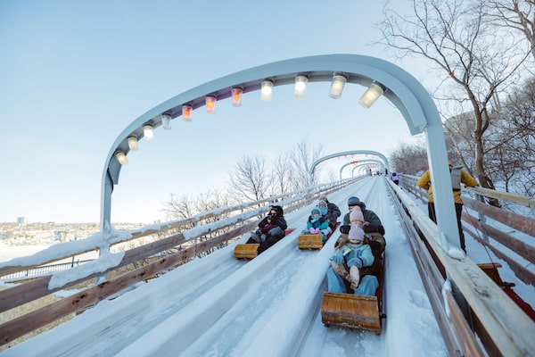 In our room, we only had a few minutes to enjoy the view of the traversiers (passenger ferries) elbowing their way through the ice because our sons Desmond, 14, and Victor, almost 10, were already pulling on their snow pants. In return for leaving their devices at home, my wife Erin and I promised them unlimited rides on Quebec City’s version of a roller coaster. And it was right beside our hotel.