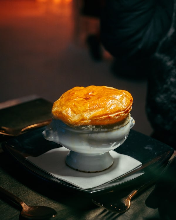 The truffled consommé of duck breast at the Restaurant de l’Hôtel de Glace.Supplied