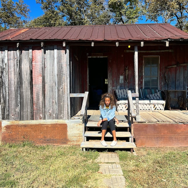 Ms. Preddie sits outside a former sharecropper cabin in the Mississippi Delta, a reminder of the the state's strong connections to slavery.Supplied/Supplied