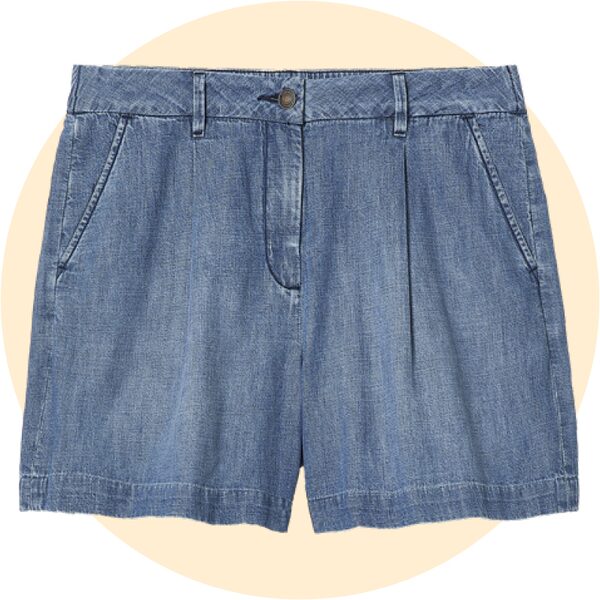 Tailored denim shorts in a medium-blue wash can be styled with everything from a tank top to a linen blouse on your travels.