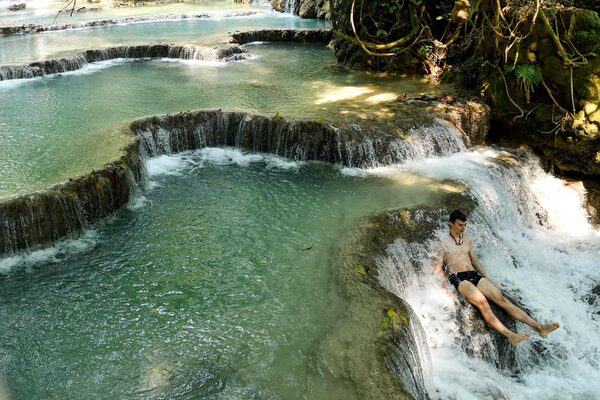 A tourist soaks in a pool of the Kuang Si waterfalls outside Luang Prabang.MANAN VATSYAYANA/AFP/Getty Images