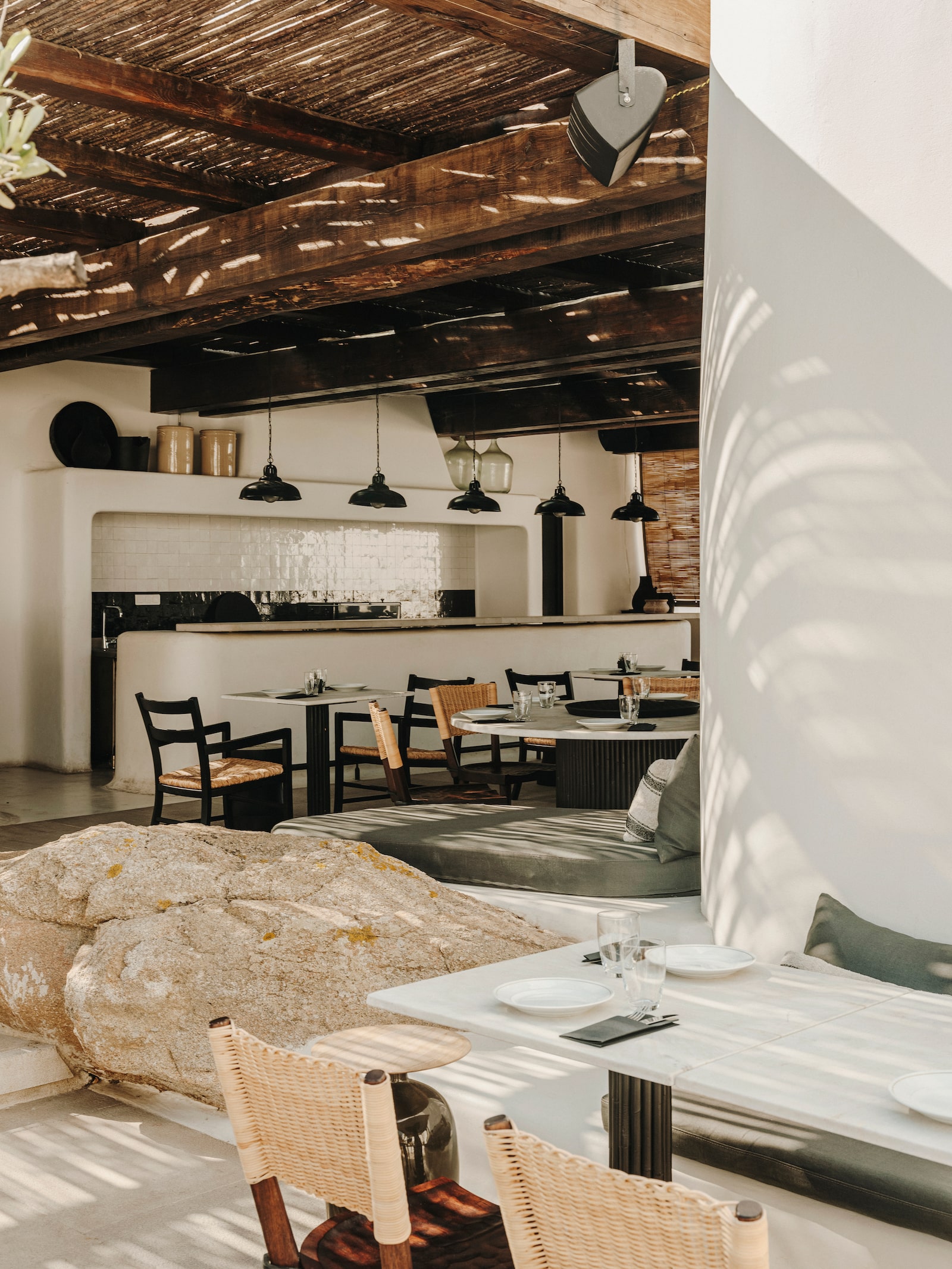 Perched over Ornos Bay, each of Kalesma’s marshmallow-like suites are fronted by a showstopping and secluded saltwater plunge pool. The resort was created by fourth-generation Mykonians and each hillside suite has commanding views of the bay and ocean framed by vivid bougainvillea, succulents and herb gardens. Each villa includes an outdoor shower, an ensuite that feels like a private apartment and layouts that invite you to move seamlessly between indoors and out.