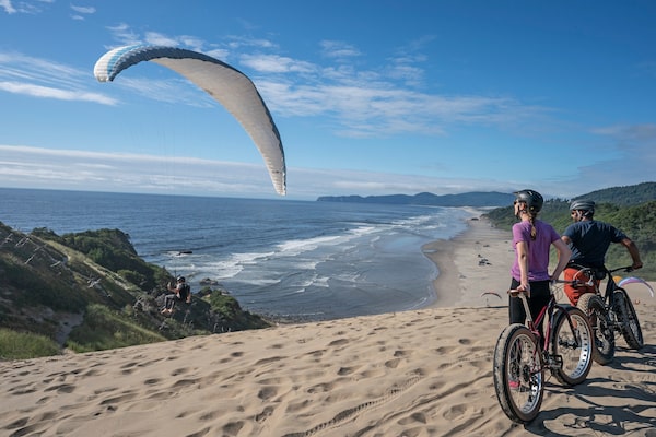 Outdoor adventure is not in short supply here, be it from biking and hiking the Oregon Coast Trail, kayaking the South Coast’s rivers or sandboarding in Oregon Dunes National Recreation Area. For something more relaxed, you can stroll the beach at Fort Stevens State Park to find the 1906 Peter Iredale shipwreck, or explore an old ghost town on the Tillamook Bay Heritage Route. For a bit of guidance, follow the Oregon Coast Public Art Trail (with more than 800 exhibits including sculptures, murals and totem poles), the Oregon Film Trail (calling all fans of The Goonies, One Flew Over the Cuckoo’s Nest, Free Willy) or two food trails that have suggested stops at restaurants, farms, craft breweries, bakeries and markets.
