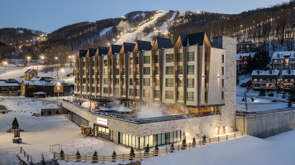 This new property opened in January and it’s steps from Bromont’s ski slopes and cycling trails. The first ski-in, ski-out hotel in the Eastern Townships offers 134 suites ranging from studios to two-bedroom layouts for up to eight guests, all with full kitchens and workspaces. Amenities include an outdoor pool, whirlpool, fitness centre and EV charging. A major draw is CABINN, the hotel’s in-house restaurant led by acclaimed Quebec chef Laurent Godbout, where local ingredients, mountain views and a heated terrace lend an elevated feel to the stay.
