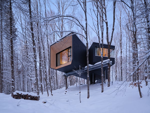 Set in the forested hills of Minden, Ont., Hartwood reimagines the tree house stay as high design. Created by Fort Treehouse Co. founders Lauren and Cam Green, the off-grid retreat comprises just three architect-designed tree houses and a central gathering hub, the Hydda, on a 15-acre site bordering protected forest and the Burnt River. Designed by Toronto-based studio ksa, the structures feature minimalist interiors, full kitchens, fireplaces, rooftop decks and views into the forest canopy. More info: https://www.forttreehouseco.com