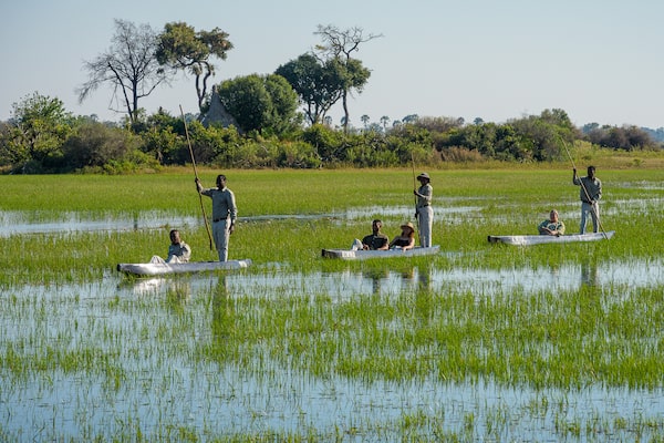 “Nothing is static in Botswana,” says Teresa Sullivan, co-founder of Mango African Safaris. She recommends a combination of land- and water-based activities to see the full scope of what the Delta offers. If you’re short on time, choose a camp that offers both; longer itineraries can include properties with access to permanent water.