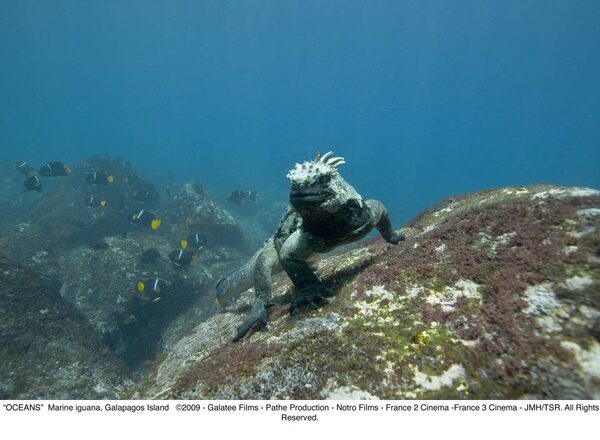 I hate to have to choose. Isn't there a creature that lives both on land and in water? A marine iguana. I sun myself on the terrestrial rocks but I feed in the ocean [ much laughter] I think I just found my animal! In a way I guess I've morphed out of the "family of oceans" and have a foot in water and a foot on land.