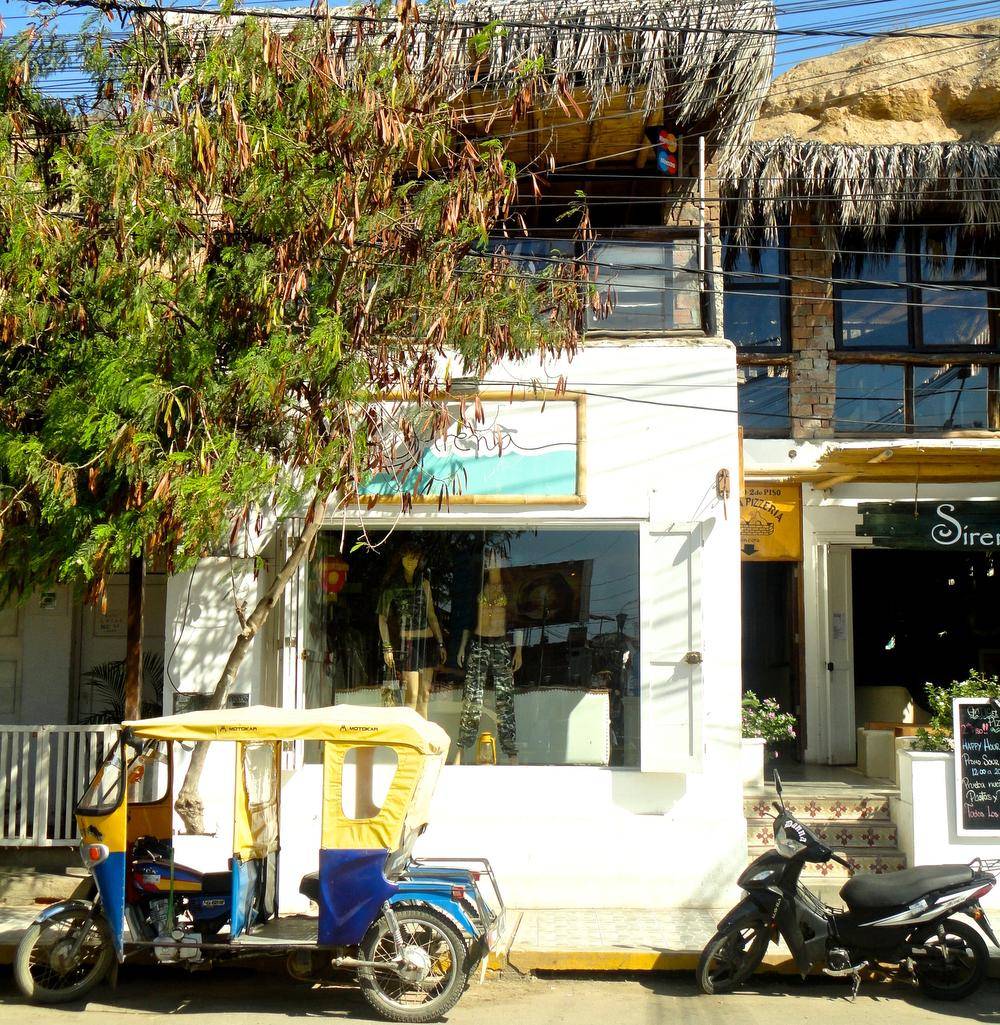 Pulling into Mancora, we find a bar-and-restaurant-lined main drag running parallel to a bar-and-restaurant-lined beach one block over. A funky, sun-bleached town of 10,000 that swells during the December through March high season, its streets are scattered with inexpensive lodging, candy-coloured moto-taxis and shops flogging surfboards, handmade candy, crochet tunics and fruit.