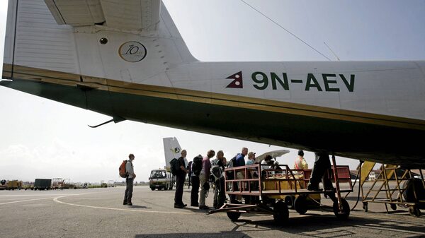 Tourists board a flight out of Tribhuvan Airport in Kathmandu.Shruti Shrestha/Reuters