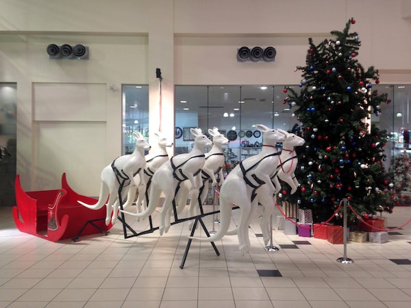 On Dec. 5, we arrived in Alice Springs. It was 41.2 C (which feels like taking a bath in your own sweat, in case you're wondering) and we went to the mall to buy supplies and escape the heat. There, I saw one of the first Christmas displays we'd seen: a sled with reindeer and a Christmas tree. But they weren't reindeer – they were kangaroos.