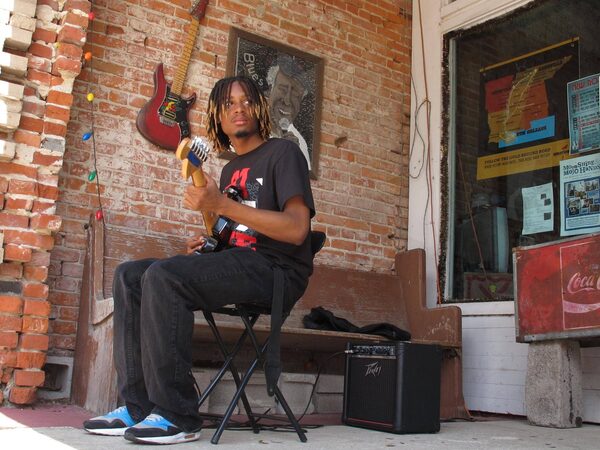 Omar Gordon, 24, plays the guitar in front of the Cat Head Delta Blues & Folk Art store on Thursday, April 30, 2015 in Clarksdale, Miss.Adrian Sainz/The Associated Press