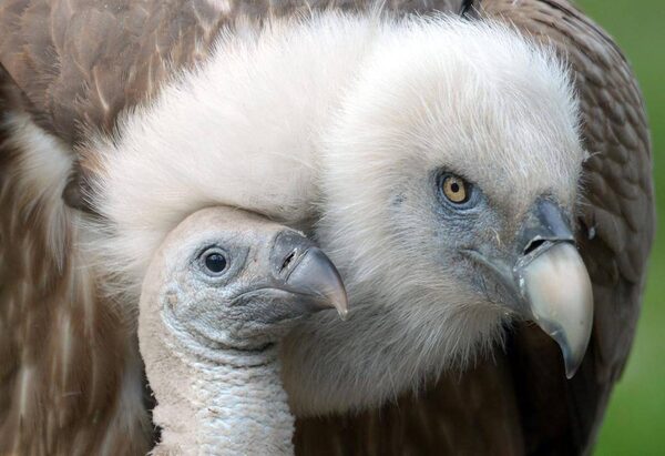A one-month-old Eurasian griffon sits next to its mother in their nest at the zoo of Duisburg, Germany, Friday, May 3, 2013.Federico Gambarini/The Associated Press