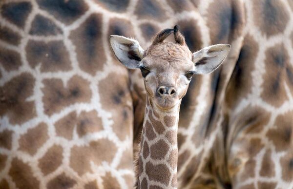 A baby giraffe stands in front of its mother, Gambela, at an enclosure of the zoo in Dortmund, Germany.Bernd Thissen/The Associated Press