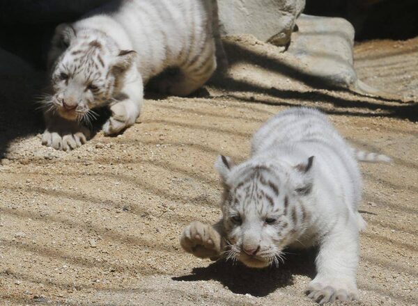 White tiger cubs crawl as four newborn cubs made their first public appearance at Tobu Zoo in Miyashoro, near Tokyo, Thursday, May 2, 2013.Koji Sasahara/The Associated Press