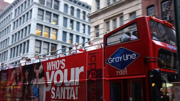 Tourists ride a bus down Broadway in New York City.Spencer Platt