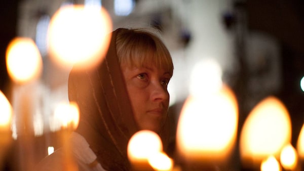A woman looks on as she prays in the Church of the Nativity on December 22, 2011 in Bethlehem, West Bank.