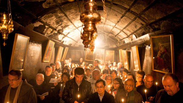 Christian pilgrims pray at the Grotto in the Church of the Nativity on December 22, 2011 in Bethlehem, West Bank.