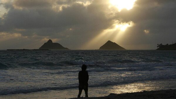 A woman walks along Kailua beach as the sun rises over the Mokulua Islands, near where U.S. President Barack Obama is staying while he is on Christmas vacation, in Hawaii, December 24, 2011.HUGH GENTRY