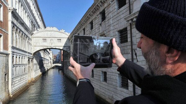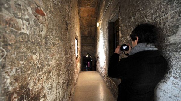 Tourists take pictures inside Venice's Bridge of Sighs. The restoration work lasted for three years.ANDREA PATTARO
