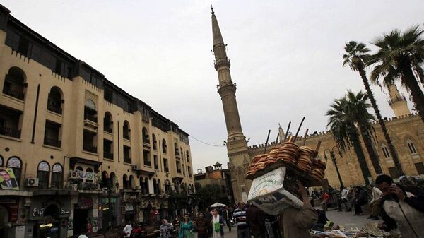 Tourists walk outside the al-Hussein mosque in the old city of Cairo on December 4, 2011. According to belief, the head of Imam Hussein, the grandson of prophet Mohammed, is buried in the mosque.MAHMUD HAMS