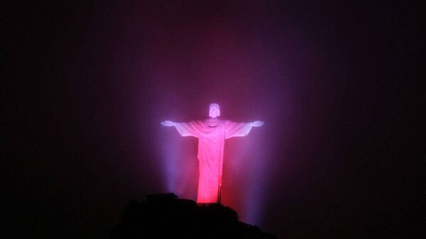 The Christ the Redeemer statue is lit up in red atop the Corcovado mountain during a World AIDS Day event in Rio de Janeiro, December 1, 2011.RICARDO MORAES