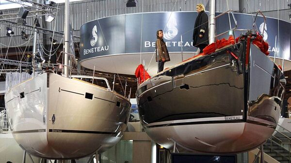 Visitors walk on the deck of a boat during the Paris Boat show on December 2, 2011.CHARLES PLATIAU