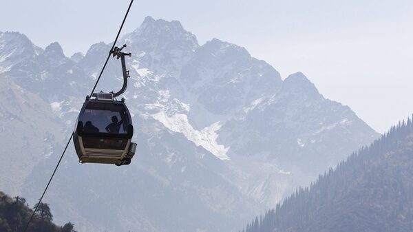 People sit on a cable car in the Tien Shan mountains outside Almaty, Kazakhstan, September 25, 2011.SHAMIL ZHUMATOV