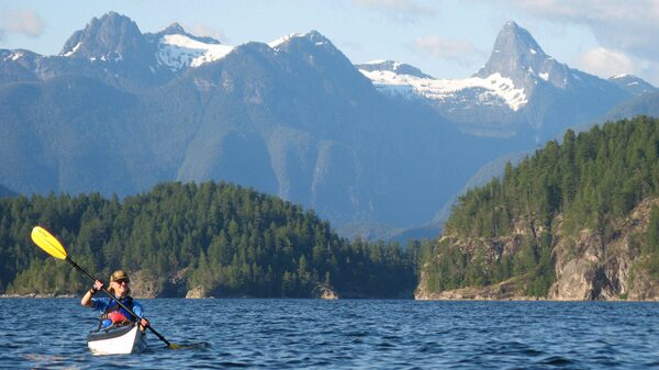 Connnie Sturgess of Calgary paddles her kayak through Desolation Sound, B.C., with the snow-capped Coast Mountains behind her, during a five-day kayaking trip through the region along the Sunshine Coast north of Vancouver, in this Aug. 2011 photo.Dene Moore
