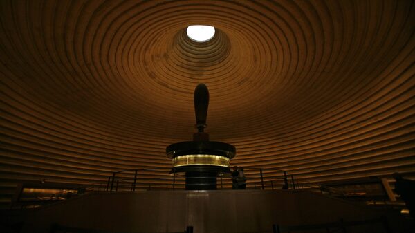 Visitors look at a facsimile of the Isaiah Scroll, one of the Dead Sea Scrolls, displayed inside the Shrine of the Book at the Israel Museum in Jerusalem September 26, 2011.BAZ RATNER