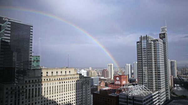 A rainbow appears near downtown Chicago, Monday, Sept. 26, 2011, after early morning storms blew through area.Kiichiro Sato