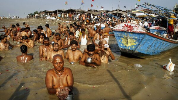 Hindu devotees perform rituals in River Ganges on the occasion of Mahalaya, an auspicious day to pay homage to their ancestors, in Allahabad, India, Tuesday, Sept. 27, 2011.Rajesh Kumar Singh