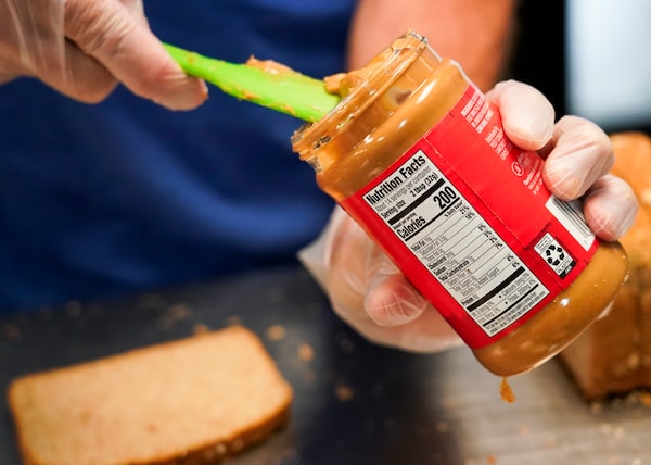 Volunteers assemble peanut butter sandwiches at Kids Meals in Houstin, Tex., in September, 2023.Jason Fochtman/The Associated Press