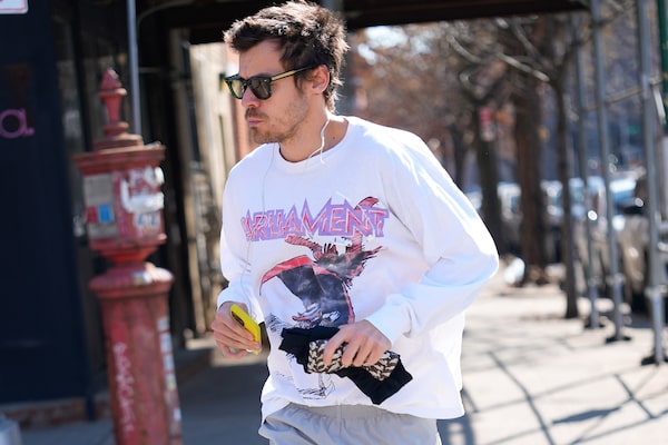 Styles’s go-to running shorts from Tracksmith are fashionably short, but they also serve a functional purpose. Running shorts can help with mobility and moisture management if things get sweaty.
