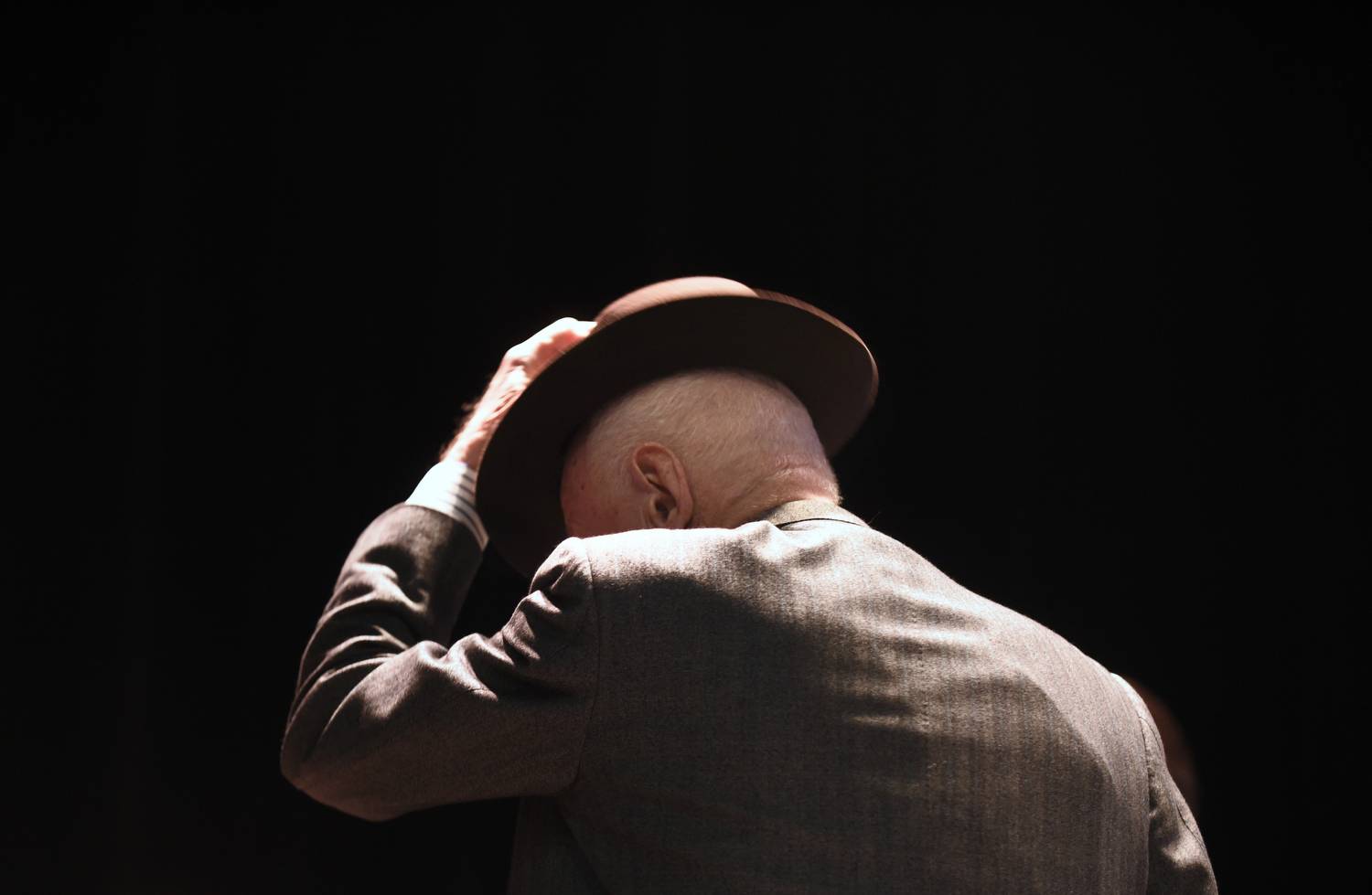 Peter Munk, founder and chairman of Barrick Gold Corporation, puts on his trademark fedora at the conclusion of the company's annual general meeting. It was announced he was stepping down as Chairman.