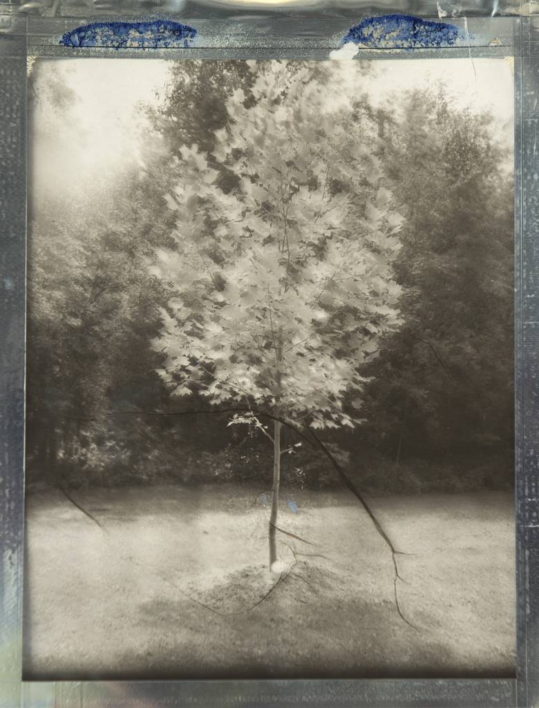Copy photo of a tree photographed with the Impossible Project's 8x10 film. The positive sheets was peeled from the backing and laid onto a piece of white paper and copied.