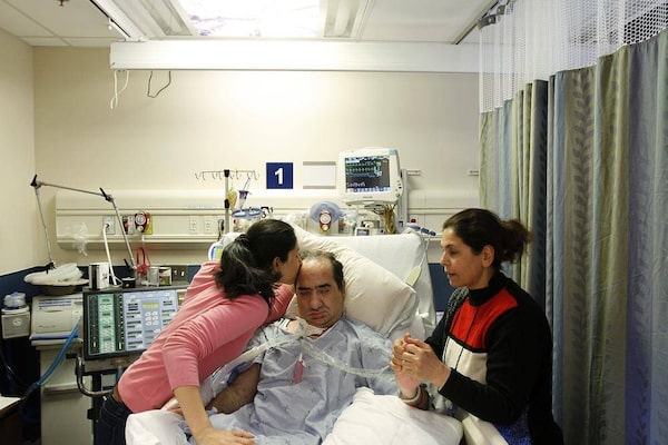 Hassan Rasouli, who recently started reacting after being in vegetative state at Sunnybrook Hospital, is visited by his daughter Majgan and wife Parichehr Salasel at the hospital inToronto, April 24, 2012.Fernando Morales/The Globe and Mail