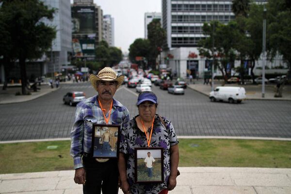 Juan Manuel Duarte and his wife Maria Del Carmen Cruz in downtown Mexico City. They haven't seen their son Angel Duarte in one year, since when he was kidnapped from the bus he was riding in the state of Guanajuato. Now they have decided to go to the Mexican capital and meet thousand of other people whose family members went missing in an attempt to organize and coordinate the search of those considered to be "collateral damage" on the war against the drugs in Mexico city May 10, 2012.Fernando Morales/The Globe and Mail